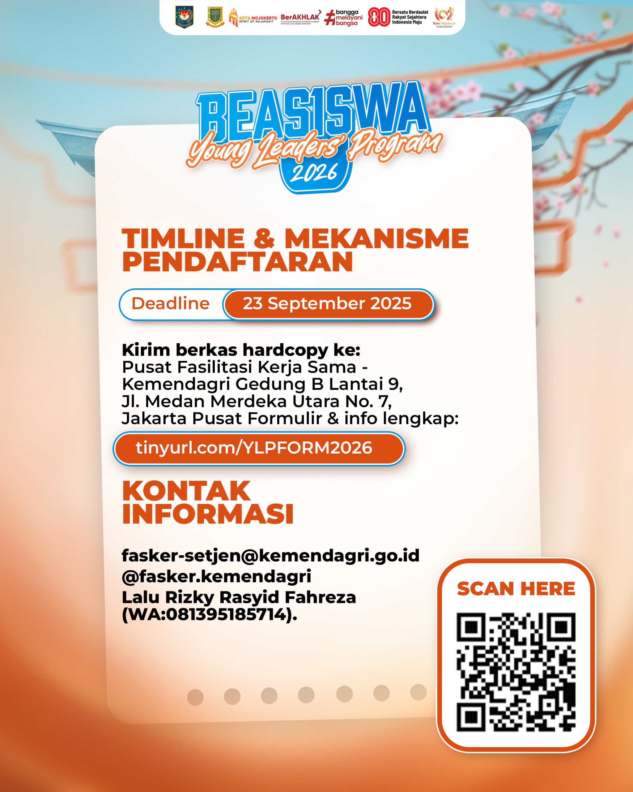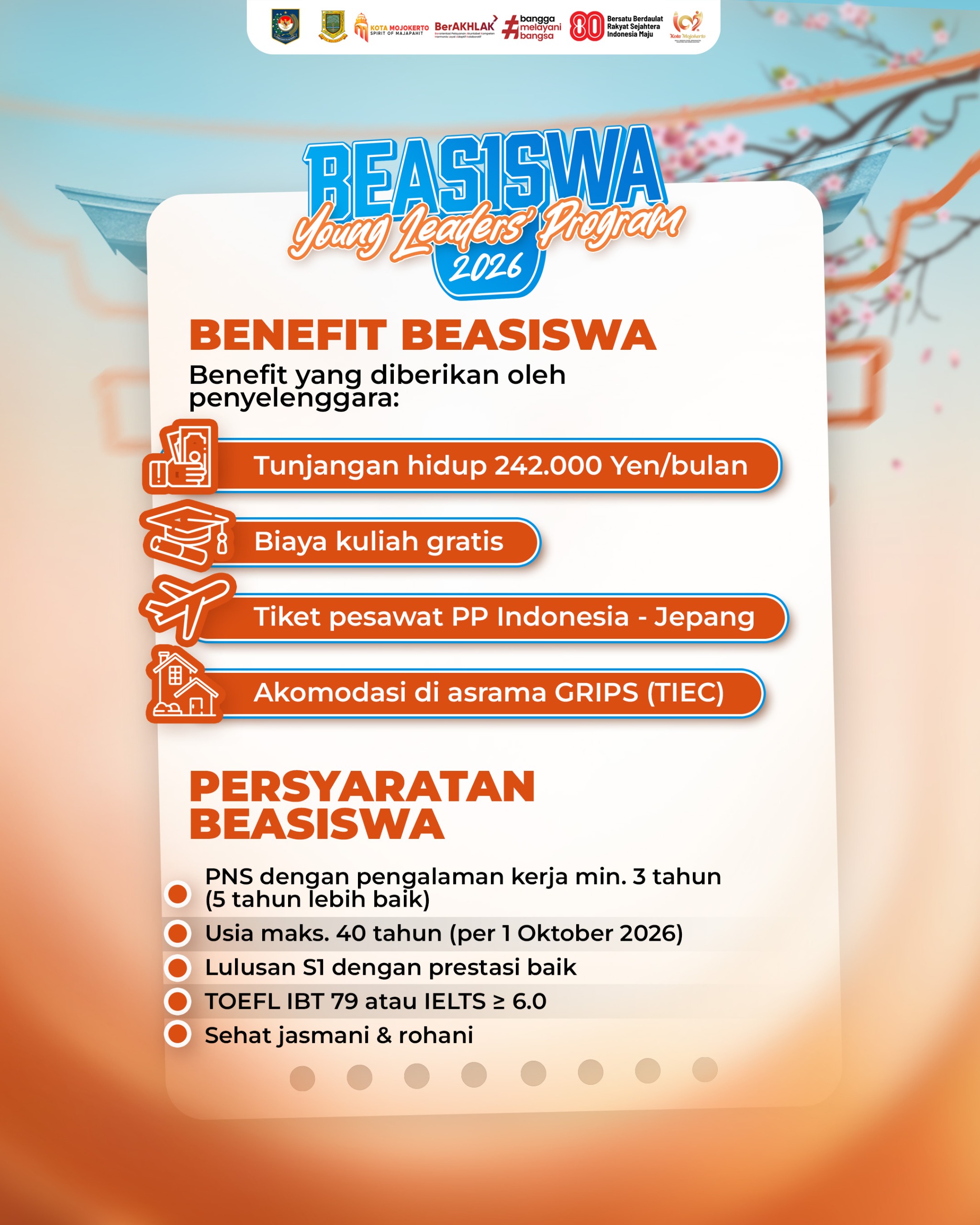 Daftarkan diri anda untuk mendapat beasiswa dari Pemerintah Kota Mojokerto.